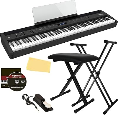 Roland FP-60X 88-Key Digital Piano - Black Bundle with Adjustable Stand, Bench, Sustain Pedal, Online Piano Classes, Instructional DVD, and Austin Bazaar Polishing Cloth