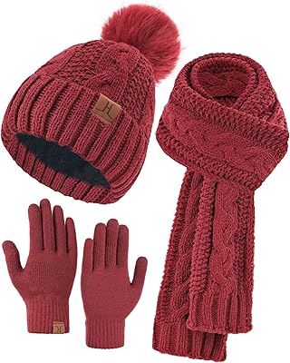 Hat Scarf And Gloves Set For Women, Womens Beanie Hats Thermal Touchscreen Gloves Scarf Scarves, Winter Accessories Sets