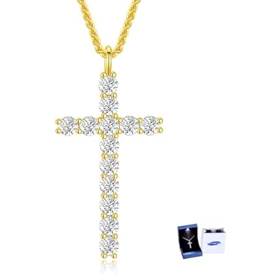 Moissanite Cross Necklace for Women Sterling Silver Gold Plating Necklaces for Wife Christian Cross Pendant Religious Anniversary Jewelry for Her Birthday Christmas Gifts for Wife Girlfriend