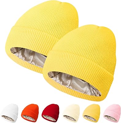 PFFY 2 Packs Womens Satin Lined Beanie Hat Silk Lining Winter Hats Beanies for Women Soft Slouchy Beanie Skull Cap